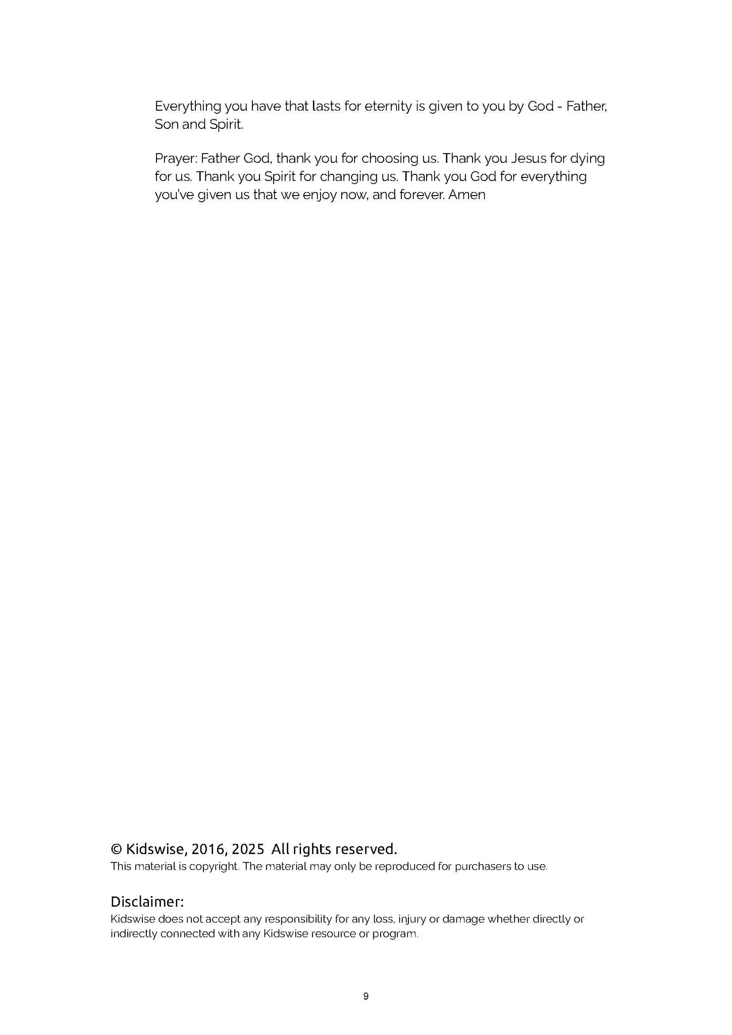 Each Kidswise unit includes both a large and a small group time. Units come complete with fully scripted stories and illustrations (when applicable), suggested songs and memory verse arrangements, a variety of games, science and drama activities, plus challenging crafts. A resource pack with graphics and instructions is also included. Purchase and click to get everything needed for this unit in a single download.
