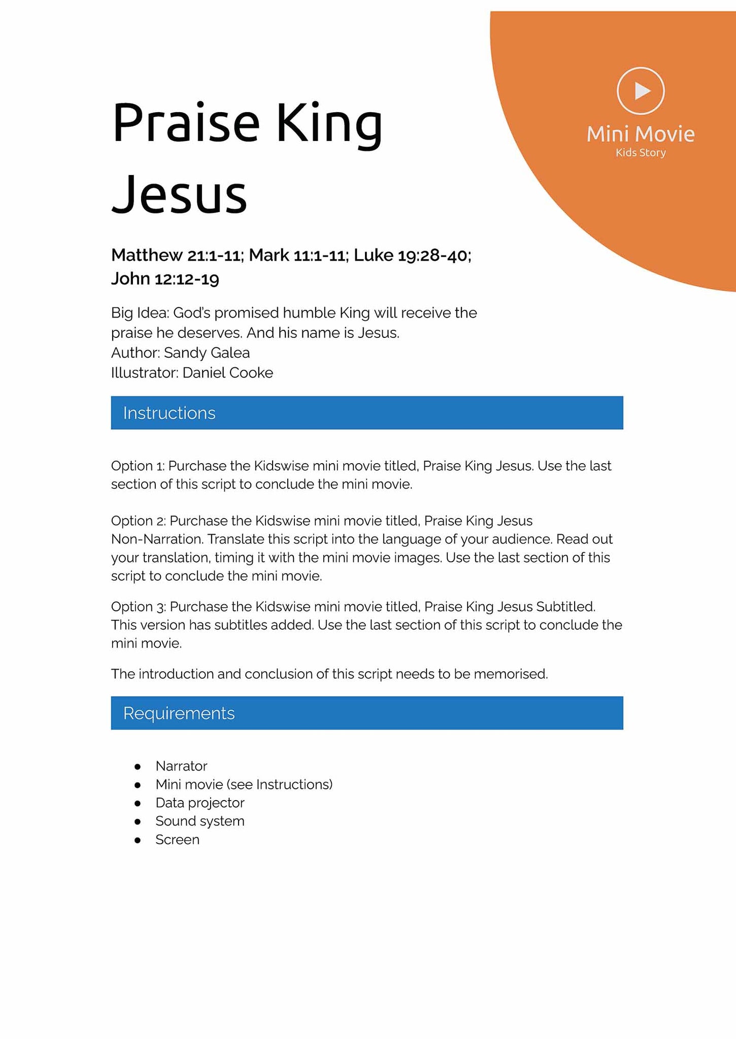 This mini movie is available in both a non-narrated version (enabling the story to be told in another language) and a subtitled version (for those who are hearing impaired). A script is included in each mini movie file.
